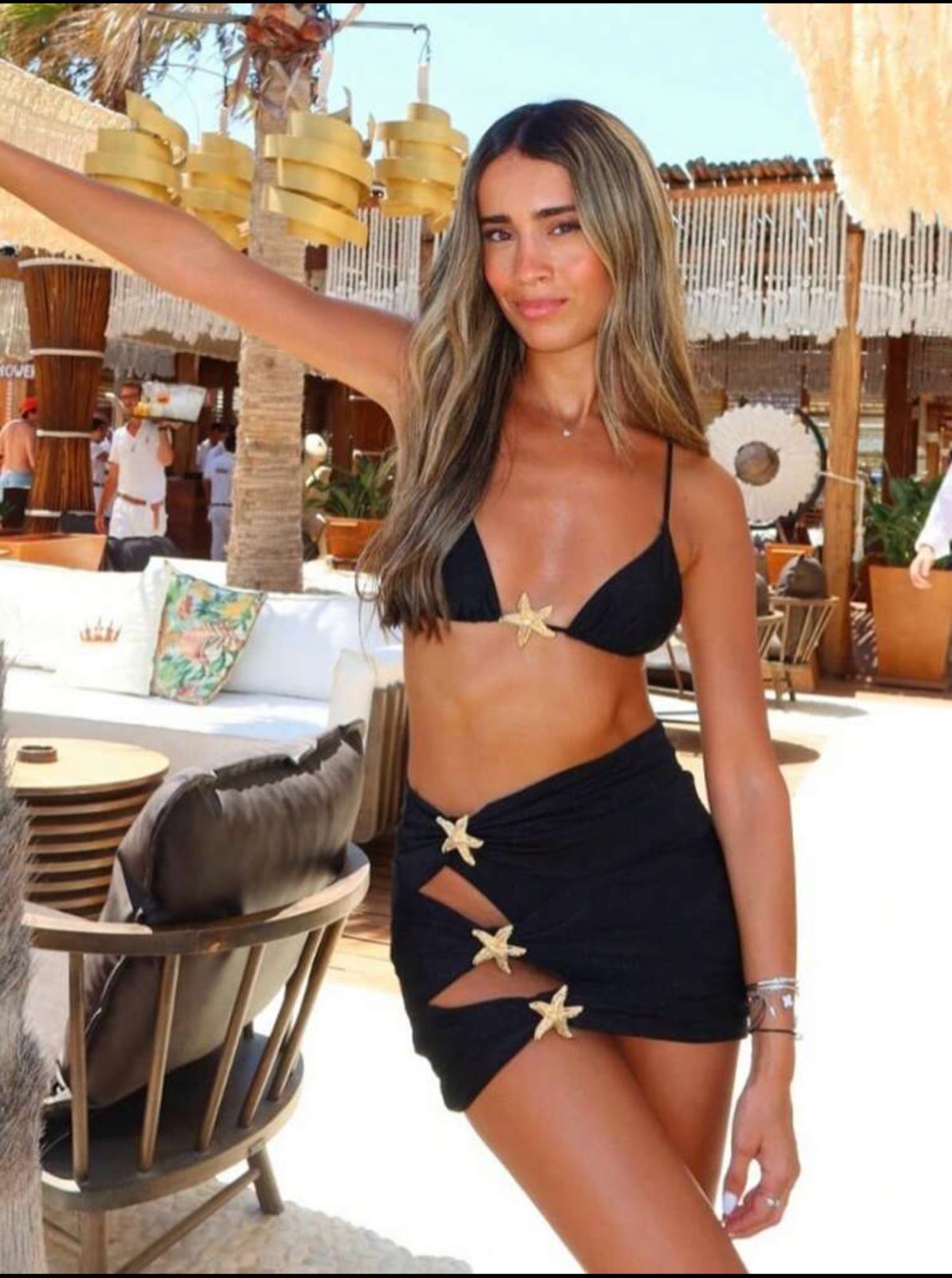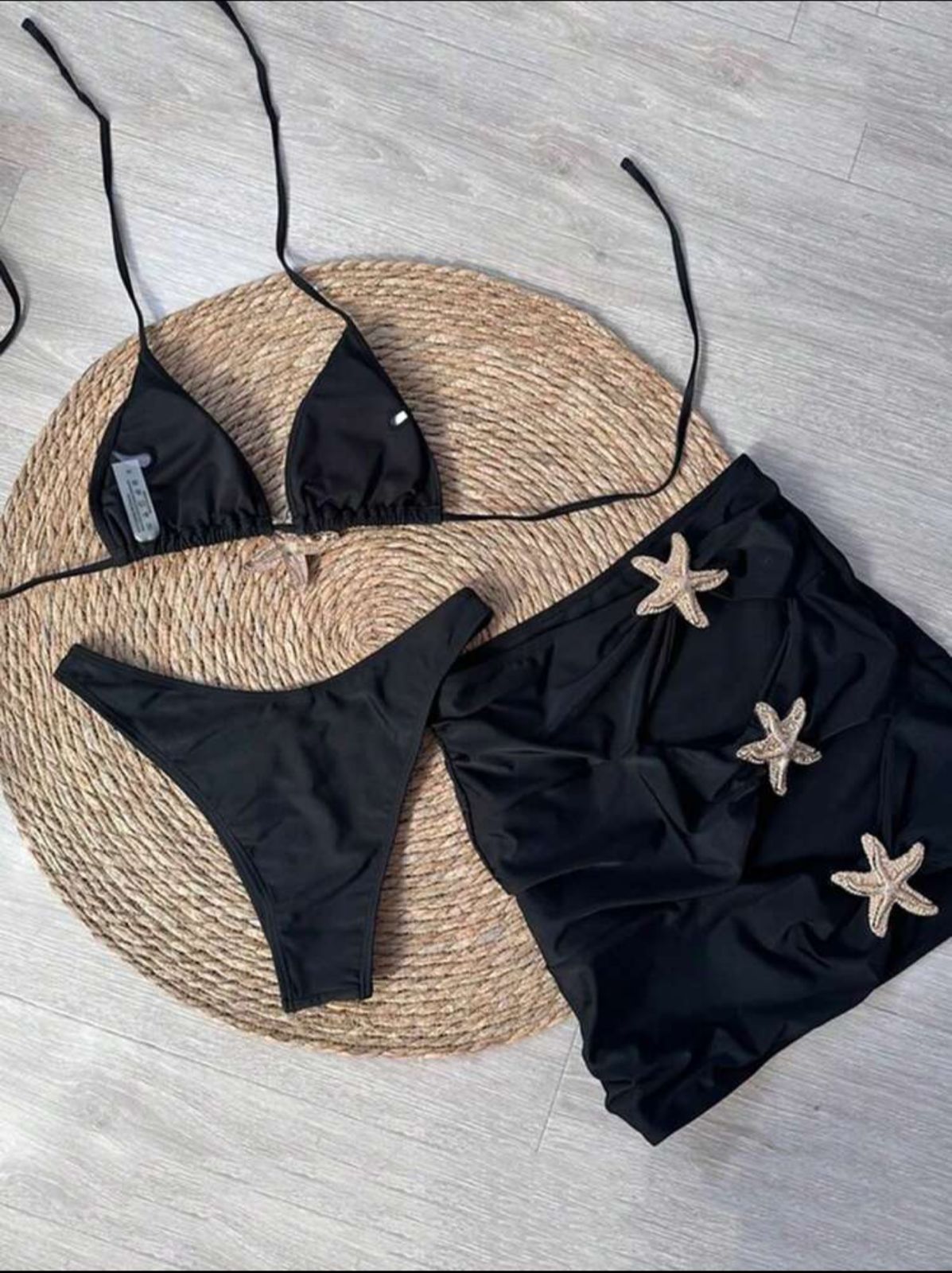 traje de baño tres piezas falda con tres estrellas doradas