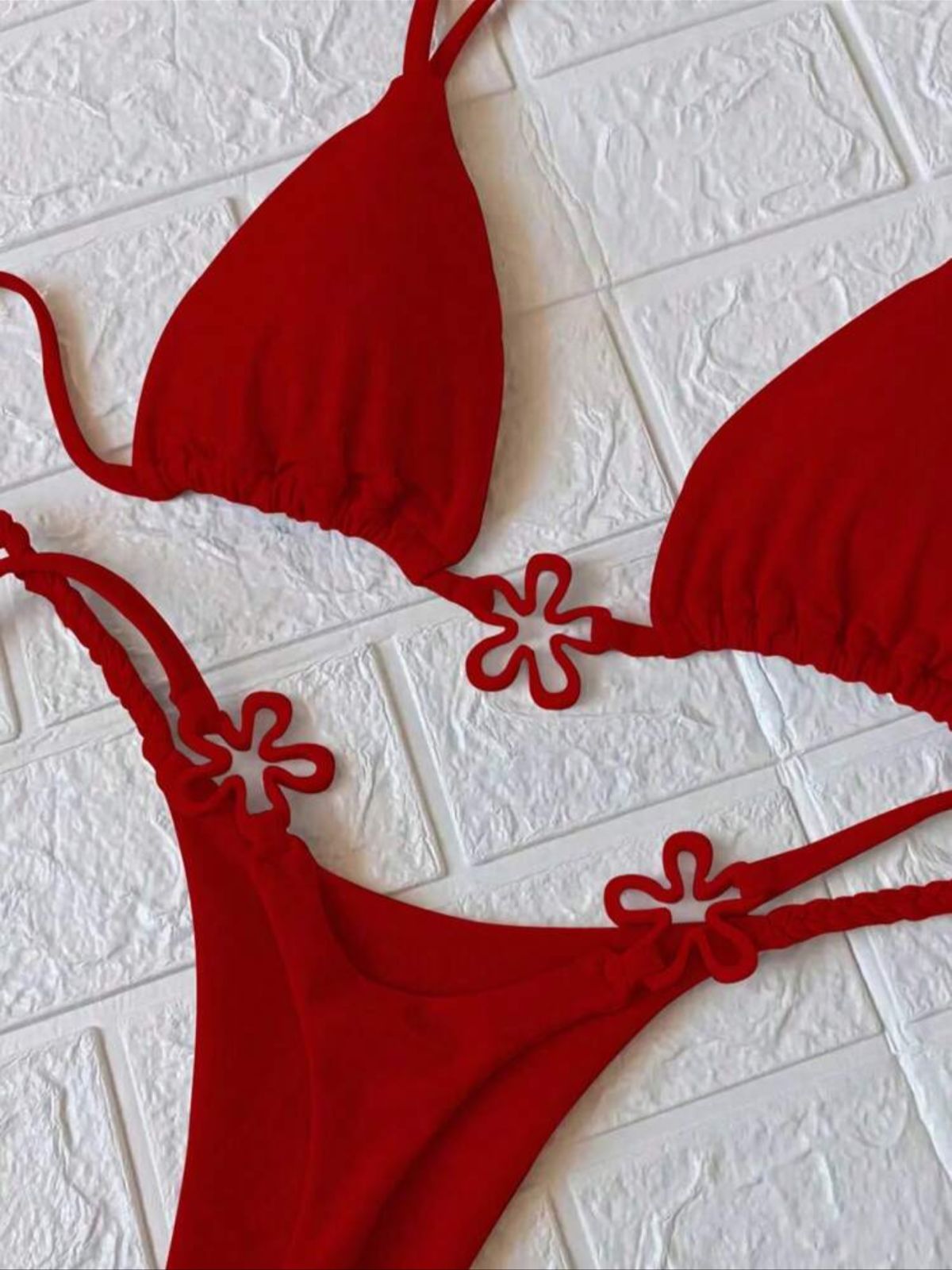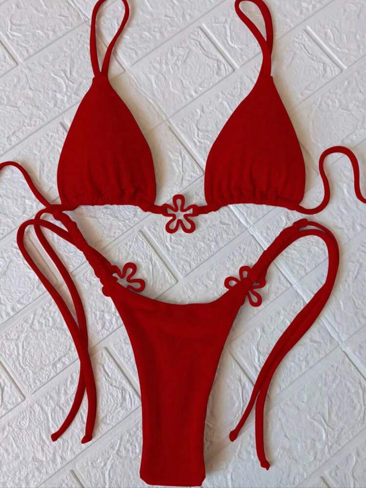 traje de baño dos piezas con decoracion de pieza plastica flor